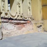 Balkonové těleso bylo již ve značně poškozeném stavu, veškeré nesoudržné části byly osekány na cihlu a znova opraveny do původní podoby.